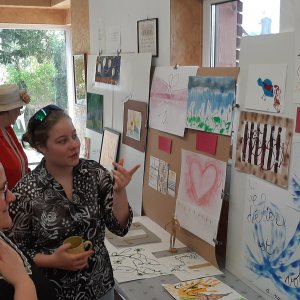 - Une stimulation de l’expression par les formes, couleurs, matières, espace, mouvement gestes... et de trouver ainsi sa veine créatrice.