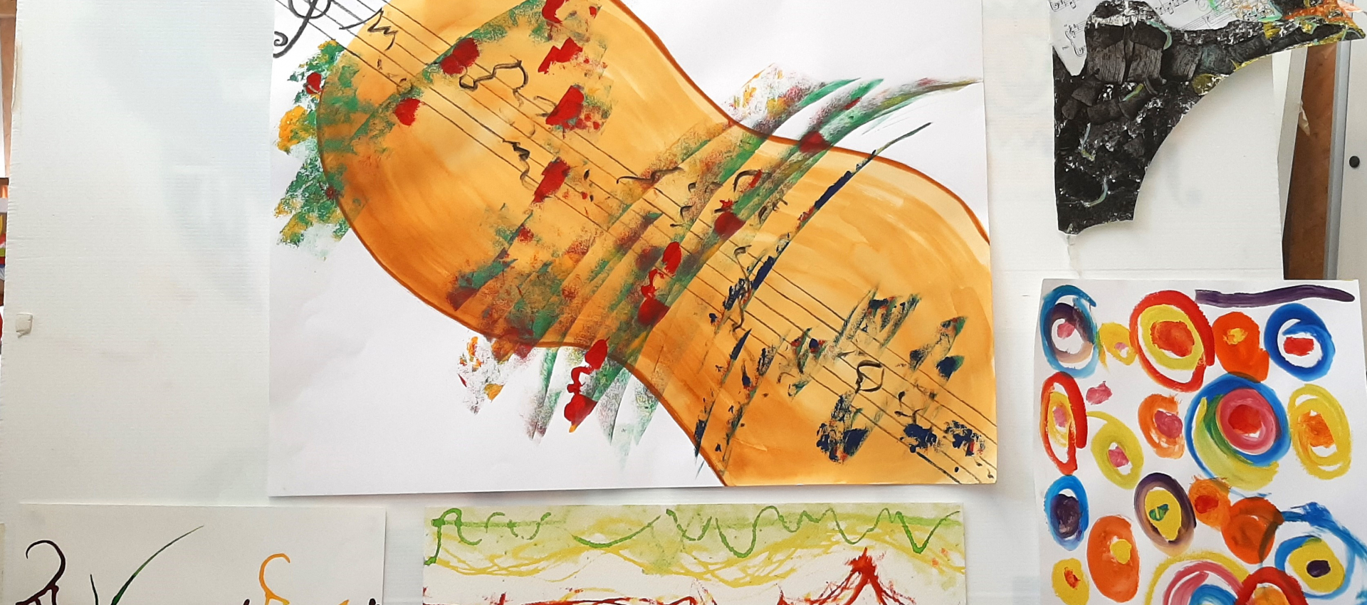 - L’exploration dans le domaine des arts plastiques, voix, écriture, corporel