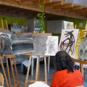 - Une stimulation de l’expression par les formes, couleurs, matières, espace, mouvement gestes... et de trouver ainsi sa veine créatrice.